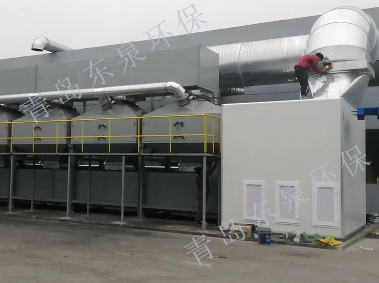 2.經(jīng)過過濾后的廢氣,進(jìn)入后續(xù)設(shè)備的吸附床,吸附凈化的潔凈氣體排放煙囪,吸附在蜂窩活性炭上的有機(jī)物,利用高溫氣體(100~120℃)對(duì)其進(jìn)行脫附。高溫氣體來源為后方CO燃燒后的高溫空氣與自然風(fēng)混合生成。